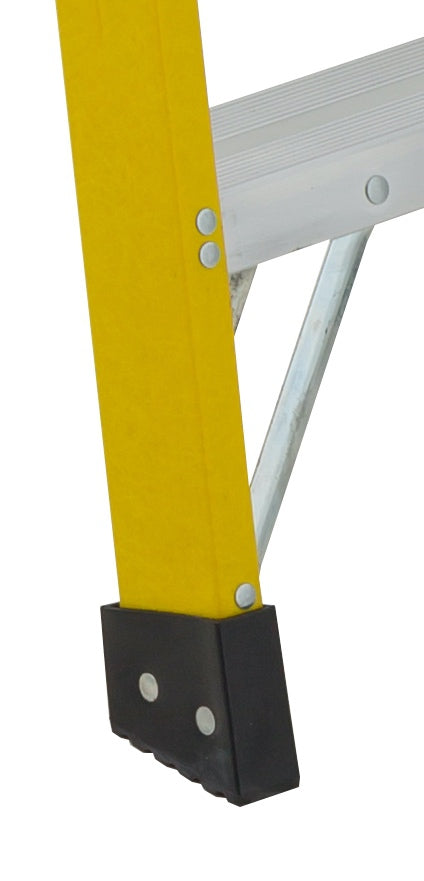 This Featherlite 10 foot non-conductive fiberglass step ladder has a load capacity of 300lbs, rated ANSI Type IA. This ladder is equipped with the ProTop with multiple tool slots, heavy-duty gusset bracing, heavy-duty slip resistant boots, inside spreader braces, and double-rivet step construction. The Featherlite 6910 step ladder meets or exceeds the safety standards set by ANSI, CSA, and OSHA.