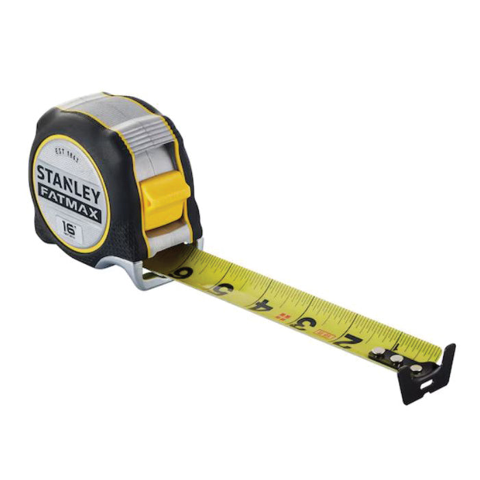 Introducing the STANLEY FATMAX PREMIUM 16’ Tape: the single answer to all your measuring needs. This heavy-duty tape is engineered for a multitude of professional applications, delivering precise measuring performance. Designed for ultimate blade control, improved blade retraction and enhanced ergonomics, the tape features an integrated finger brake. The clearly-defined, double-sided black print on the STANLEY FATMAX yellow tape enables high visibility and precise vertical and overhead measuring. Equipped with a robust, oversized Beast Hook, users will find this tape achieves an excellent grab on materials of all types. For trade pros working alone, each tape offers a long, straight and strong 16' maximum reach, ensuring optimum efficiency. The STANLEY FATMAX PREMIUM tape also features 6" of BladeArmor coating for outstanding hook connection, added strength, and resilience against abrasion and wear on the jobsite. Tape length: 16’.