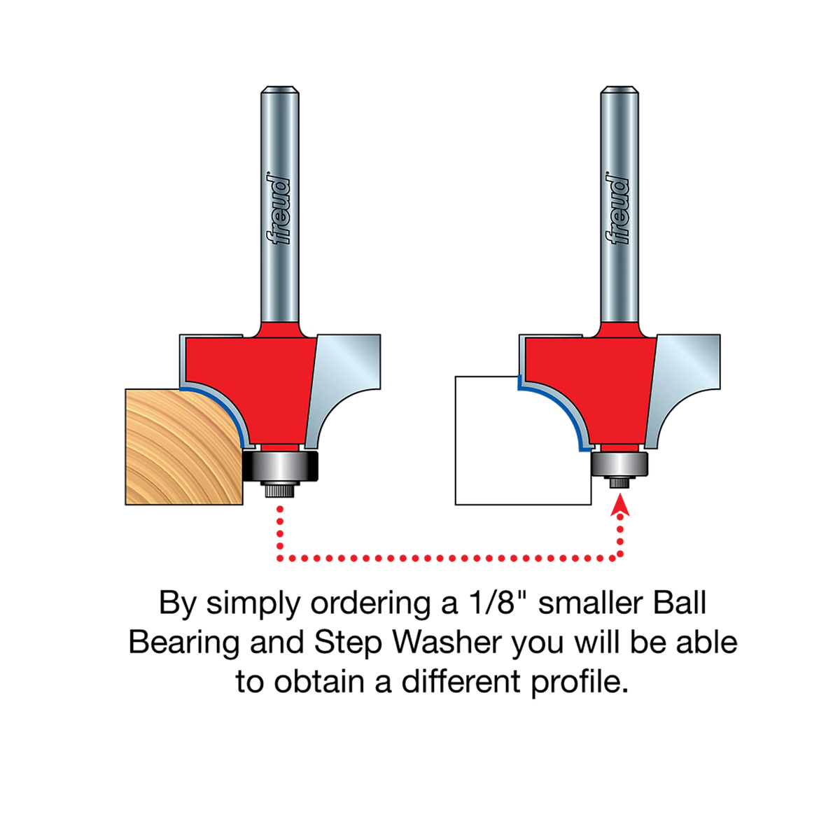 Freud Rounding Over Bits have so many uses that they are indispensable in any shop. Use them to make moldings, doors and drawers, "soften" sharp edges of parts, and so many other tasks. Most of these bits also feature Freud's unique Quadra-Cut design for flawless finish in cross-grain applications. To get more use from your bits, equip the bits with a bearing that is 1/8" smaller in diameter to create a beading profile. Use them in CNC, hand-held and table mounted routers to cut hardwood, softwood, plywood and composites.