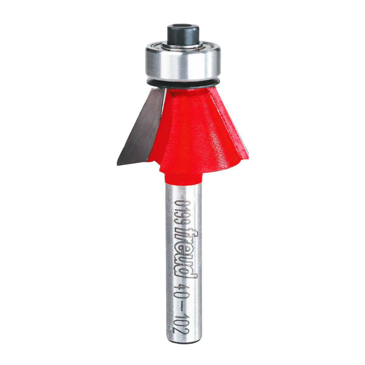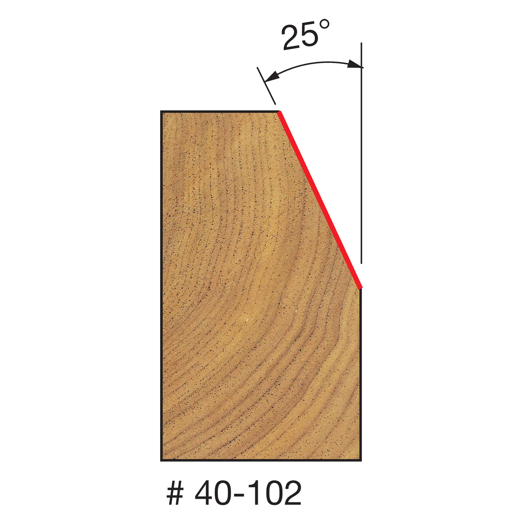 The chamfer profile seems simple, but it is a great solution for lots of multiple-sided projects, joinery, and easing edges. Creates a uniform chamfer on the edge of any work piece to add character, while retaining crisp geometric lines. #40-094 makes 16-sided pieces and #40-098 makes 12-sided pieces. Routs hardwood, softwood, plywood and composites; use in hand-held or table-mounted portable routers.