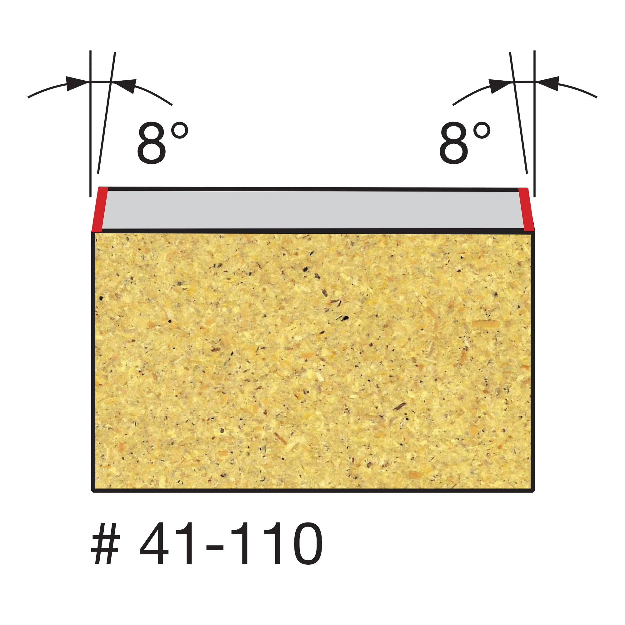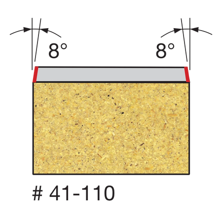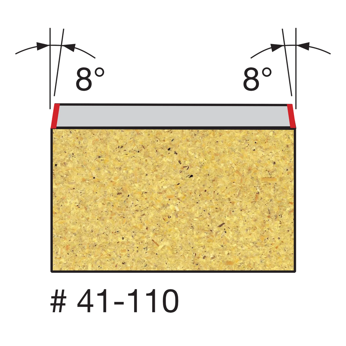 Bevel Trim Bits produce a clean, finished edge on plastic laminates with little or no filing. Choose among bevel angles from 8 degrees to 45 degrees in the 41-series bits, which also include a ball bearing guide. Or choose the solid carbide 66-100 for a 7 degree bevel in a very cost effective tool.