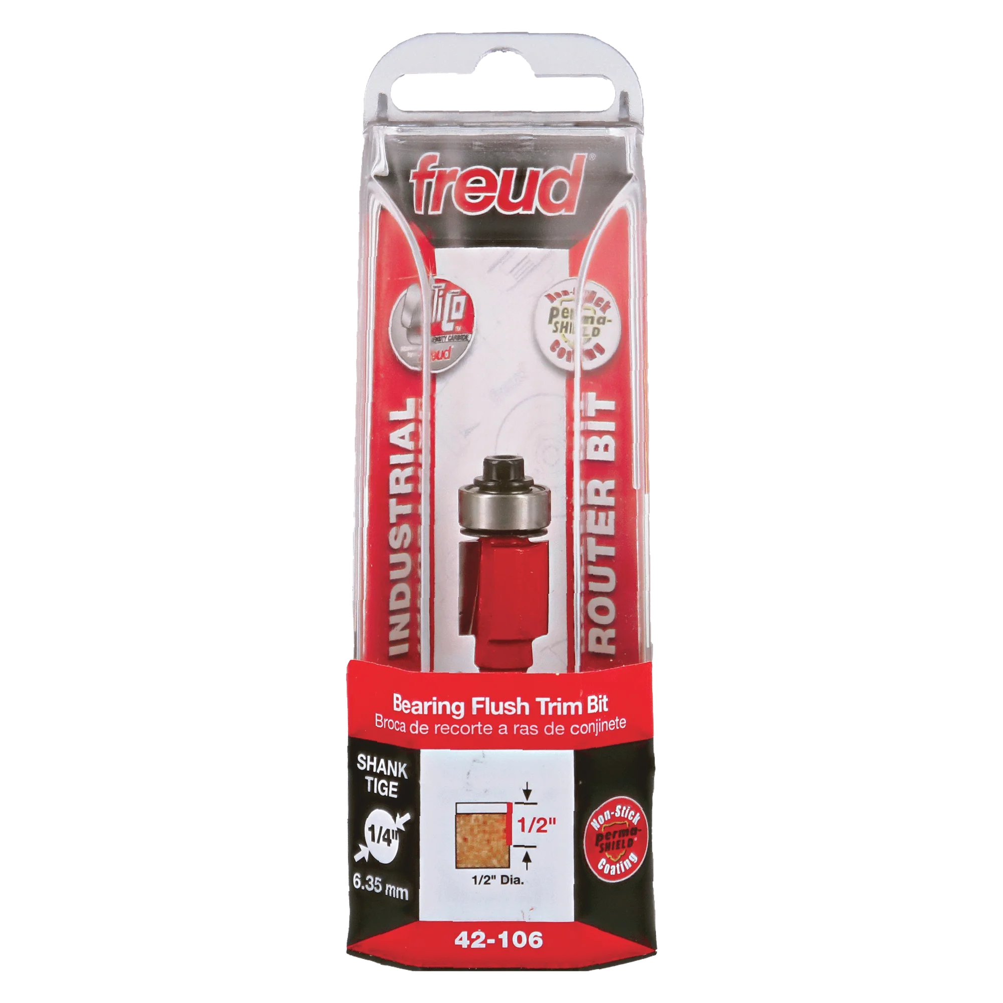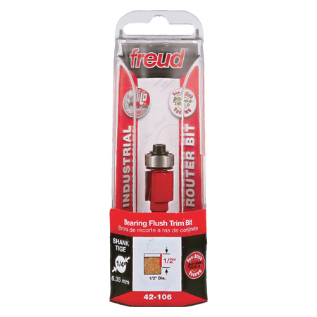 Freud 42-106, Carbide Router Bit - 1/2" x 1/2" Bottom Bearing Flush Trim Bit (1/4" Shank)
