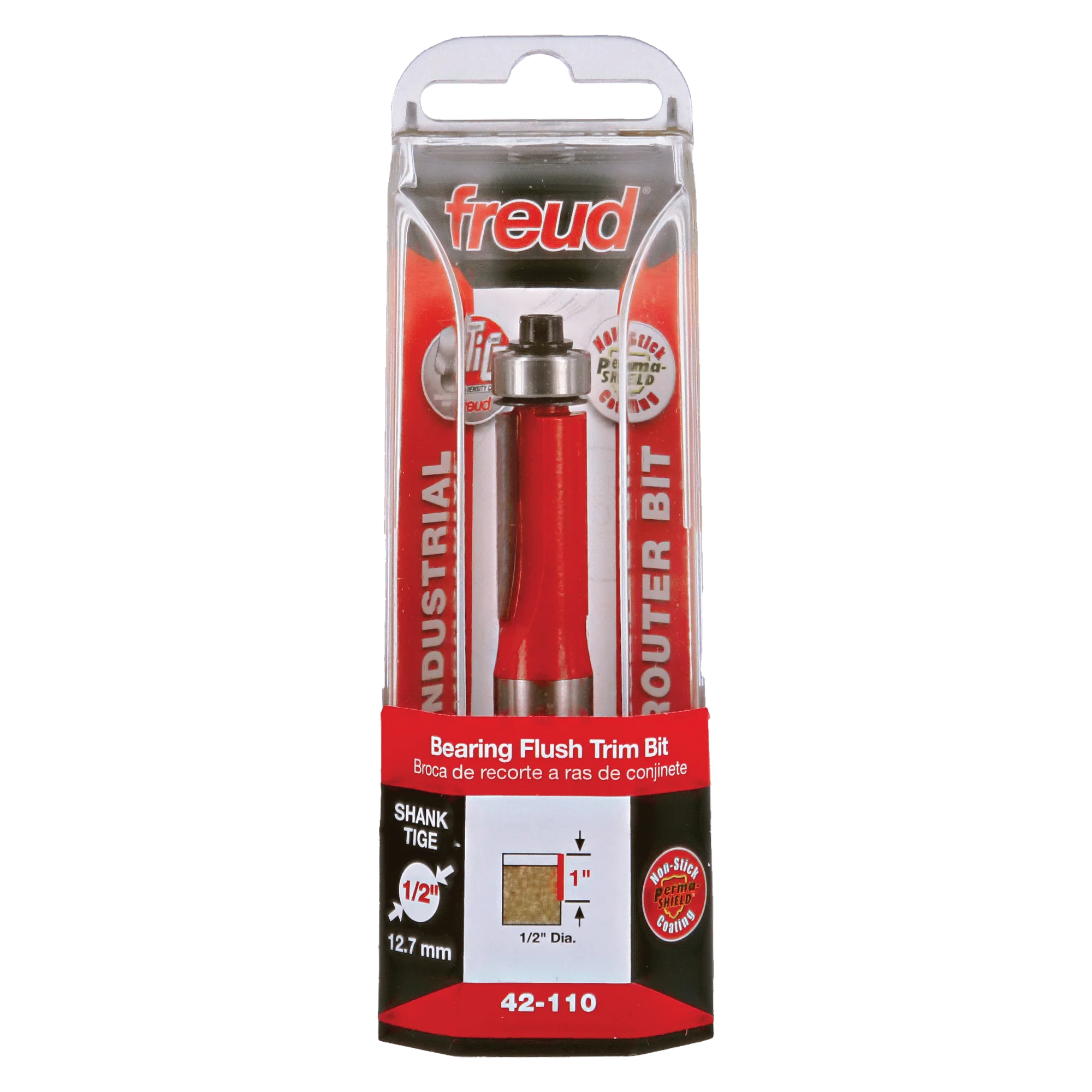 Freud 42-110, Carbide Router Bit - 1/2" x 1" Bottom Bearing Flush Trim Bit (1/2" Shank)