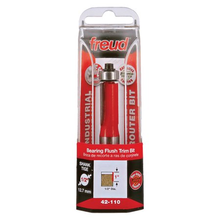 Freud's Flush Trim Bit range includes bits for any trimming application. Use these bits for precise trim work on laminate counter tops, to follow patterns to create or duplicate intricate shapes, or for any task requiring a clean cut-off along a flush edge with a smooth, burn-free cut. Use on hardwood, softwood, plywood, composites and laminates on hand-held or table-mounted routers. Two flute bits provide faster cutting and three flutes yield a superior finish.