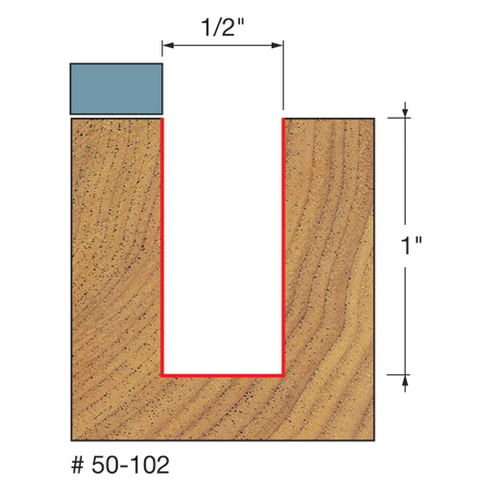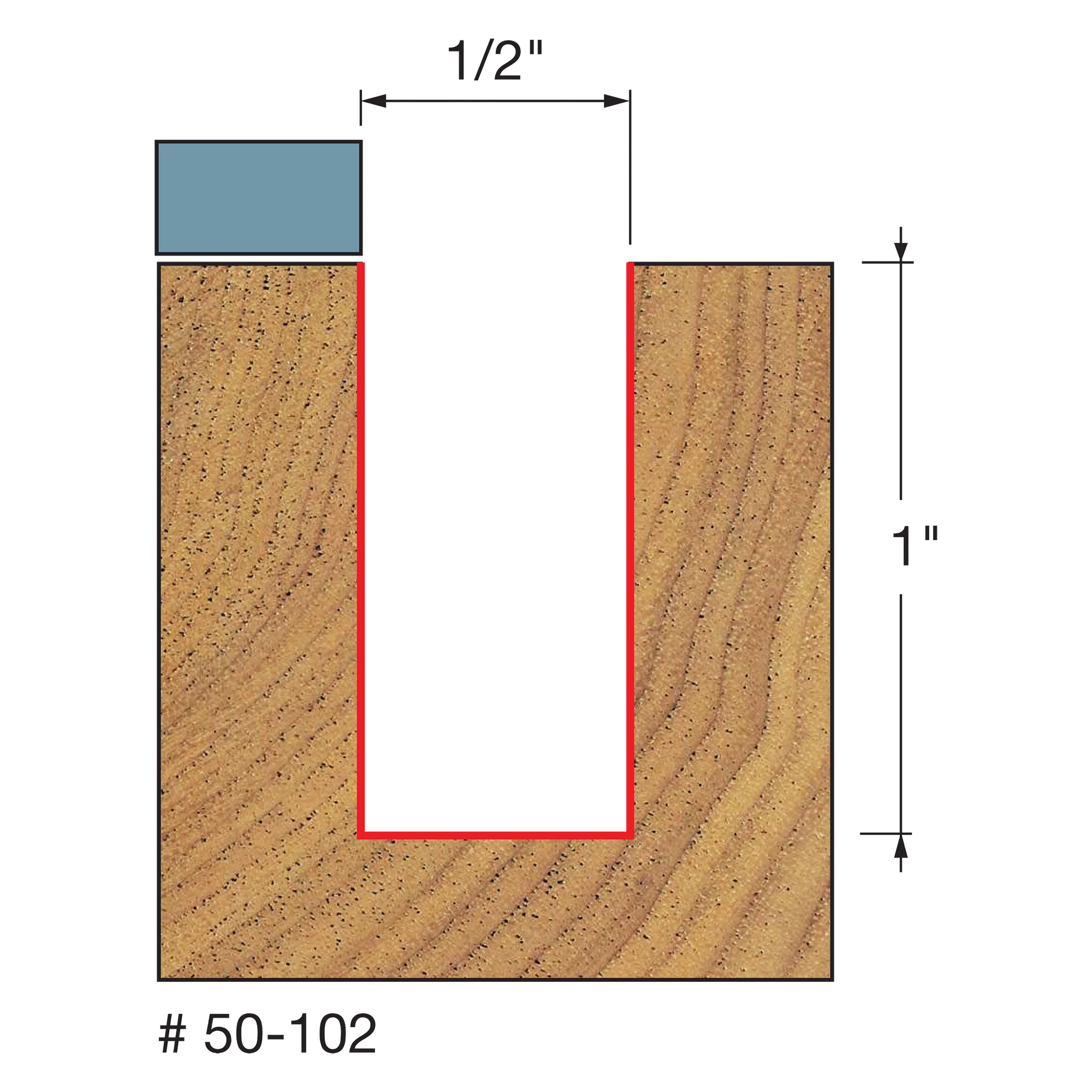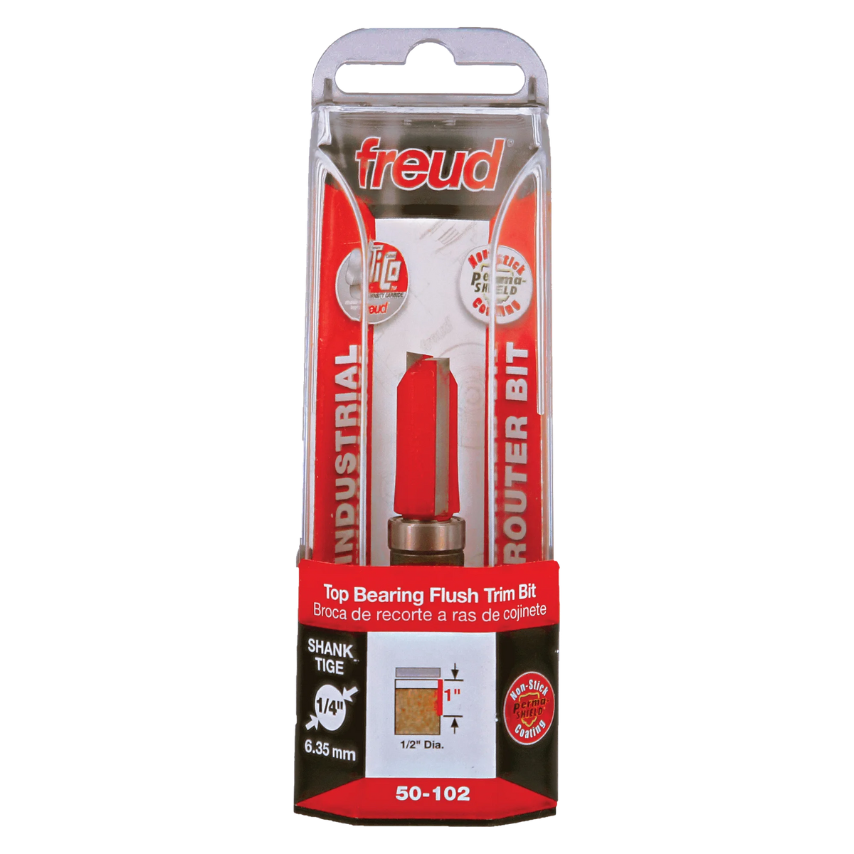 Freud 50-102, Carbide Router Bit - 1/2" x 1" x 2-5/8" OAL Bottom Bearing Flush Trim Bit (1/4" Shank)