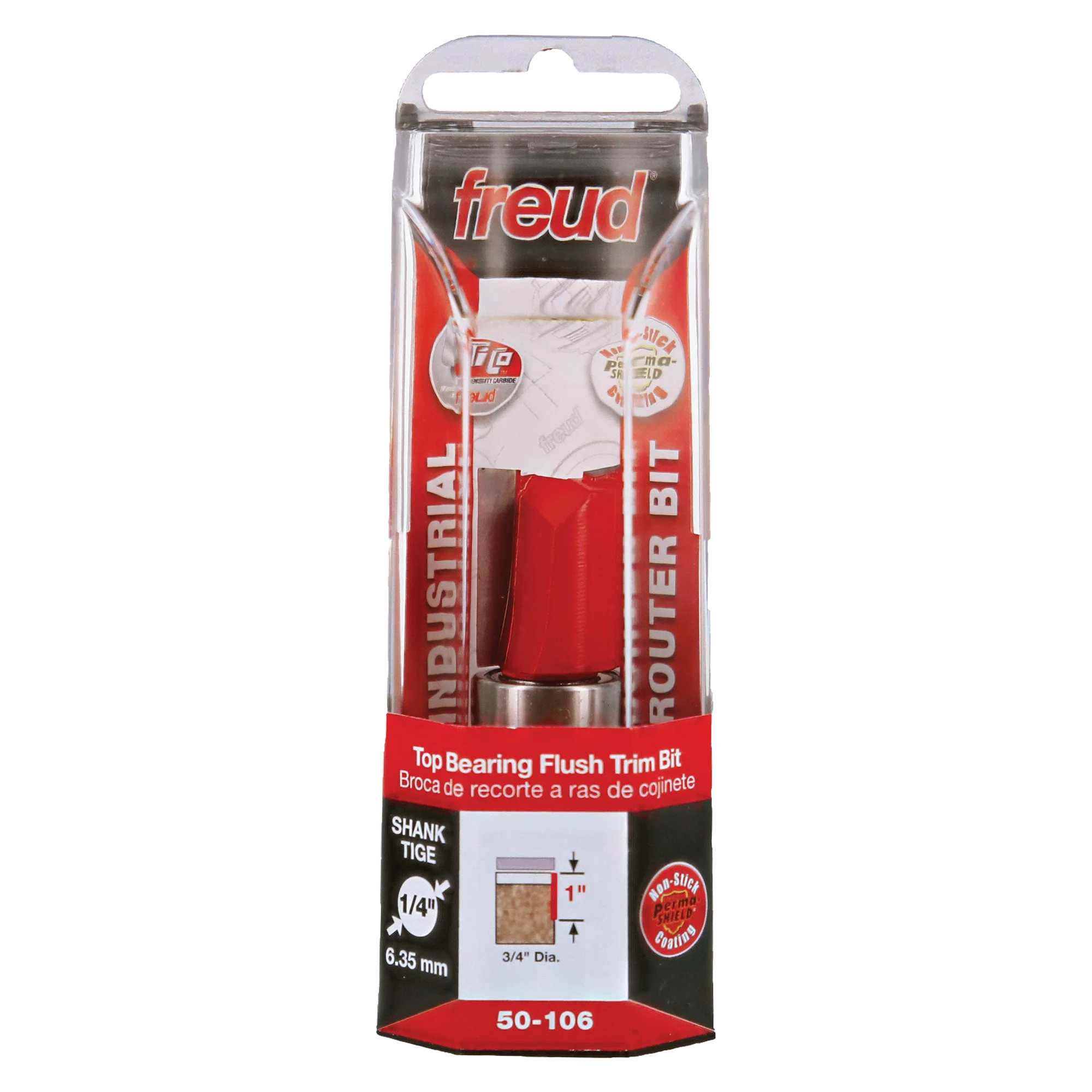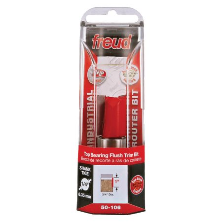 Freud 50-106, Carbide Router Bit - 3/4" x 1" x 2-5/8" OAL Top Bearing Flush Trim Bit (1/4" Shank)