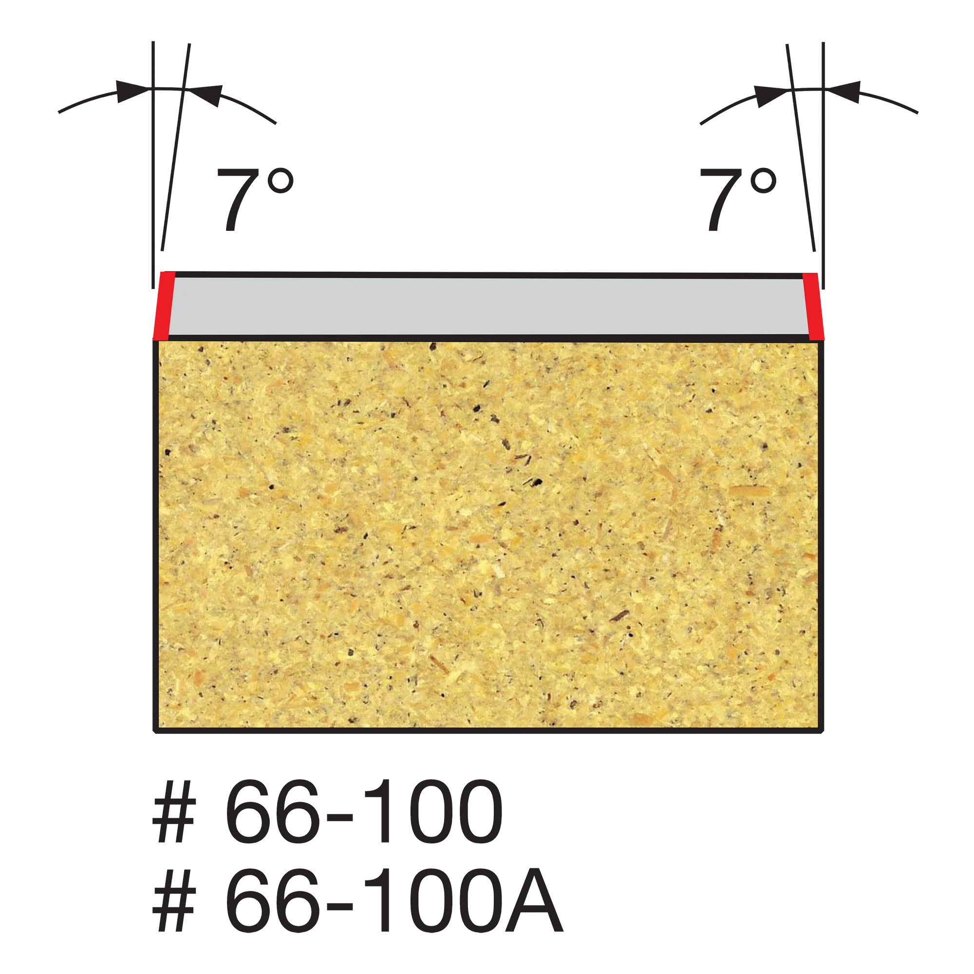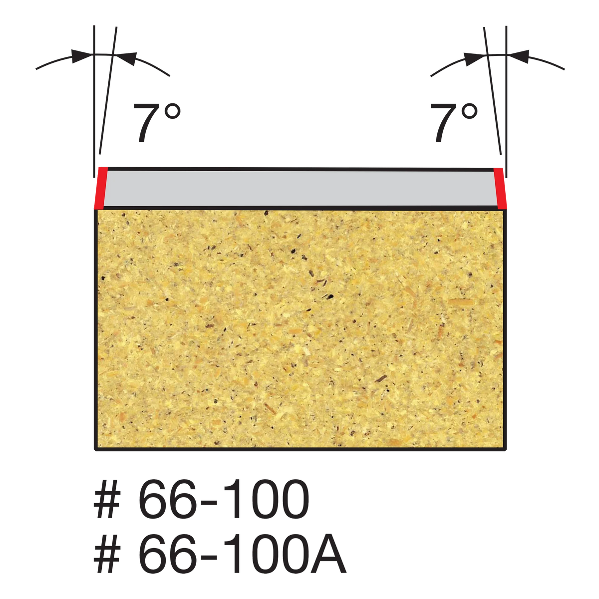 Bevel Trim Bits produce a clean, finished edge on plastic laminates with little or no filing. Choose among bevel angles from 8 degrees to 45 degrees in the 41-series bits, which also include a ball bearing guide. Or choose the solid carbide 66-100 for a 7 degree bevel in a very cost effective tool.