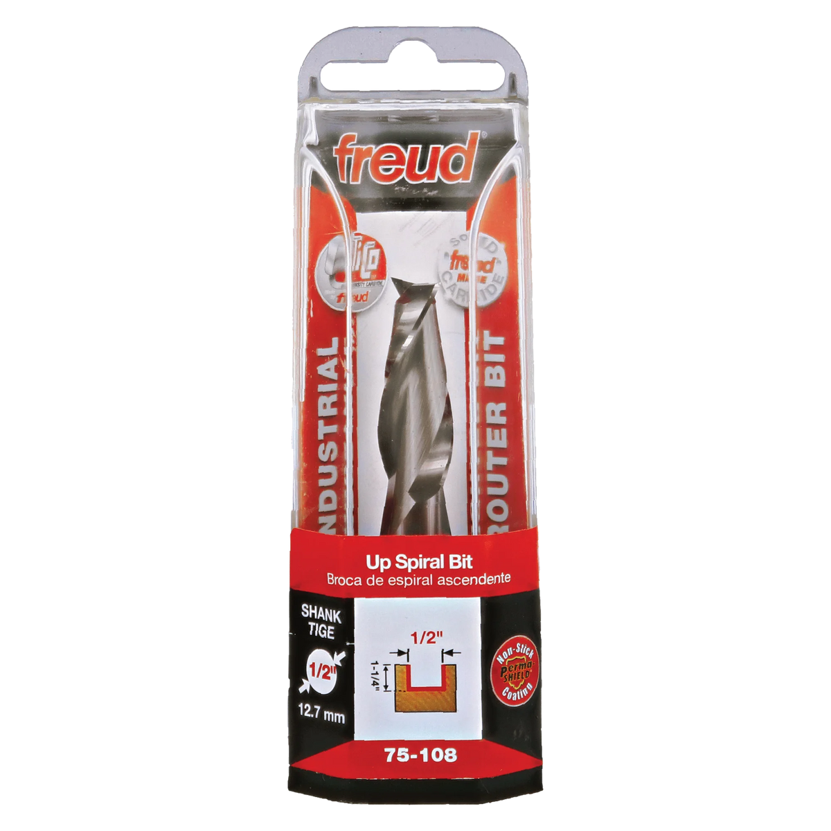 Freud 75-108, Carbide Router Bit - 1/2" x 3" Up Spiral / Double Flute Router Bit (1/2" Shank)