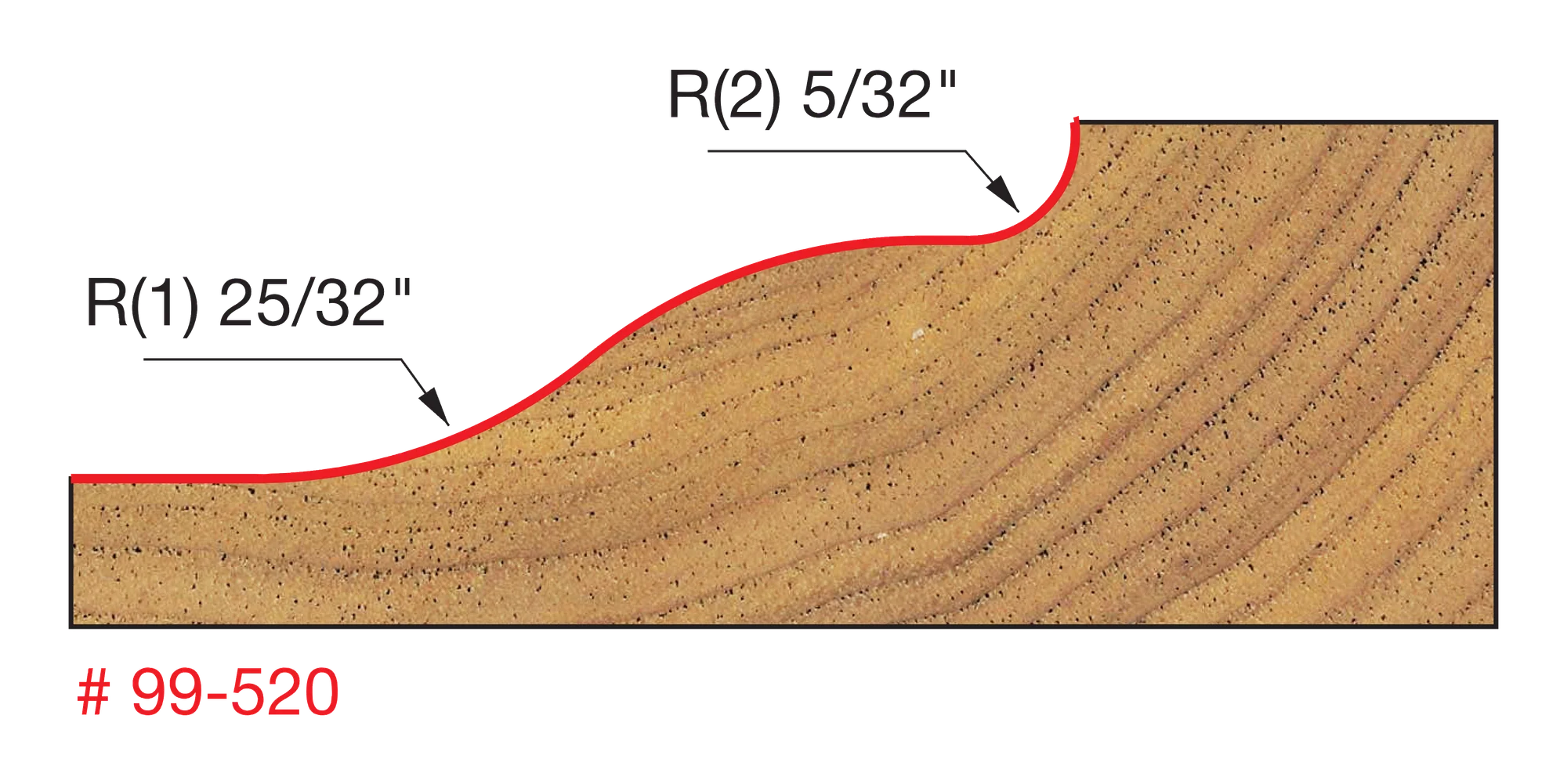 Freud 99-520, Carbide Router Bit - 3-1/2" x 2-1/2" 2+2 Raised Panel Bit (7/32" Minor Height)