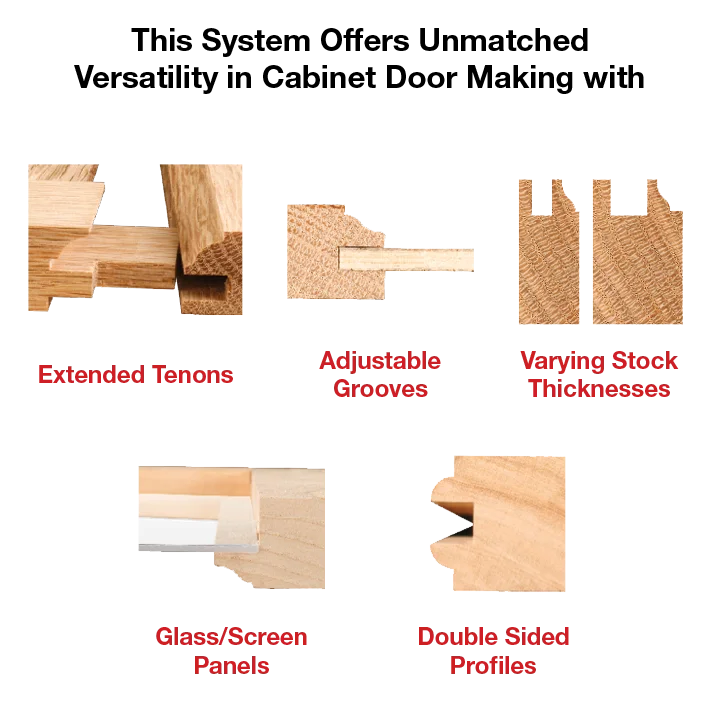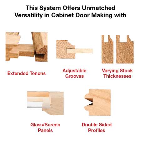 - Patented Extended Tenon Capability for milling extra-strong long tenon joints