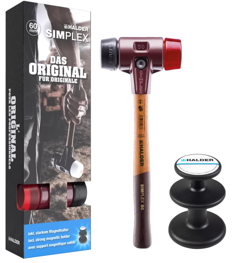 Value box: SIMPLEX soft-face mallet (art. no. 3026.060) plus Halder magnetic holder (art. no. 3688.003).