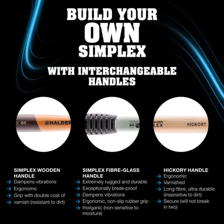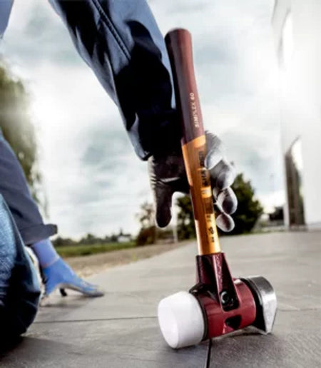The SIMPLEX soft-face mallet D60mm (art. no. 3027.260) with the insert combination of rubber composition / Superplastic is the top seller in Halder's product selection. Boasting an ingenious shape, the rubber insert with “stand-up” allows the hammer to stand securely on its head and reduces the need to bend over, making it possible to work in a much more ergonomic and back-friendly manner. Ultra low-wear, impact cushioning and odourless, the proven rubber blend offers a much longer service life than a conventional rubber hammer. The superplastic insert allows for a more powerful impact force than the rubber insert. All parts can be replaced / retrofitted, which makes it highly efficient and friendly to the environment.