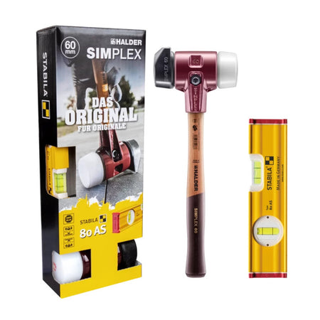 Halder 3027S024, 60mm Gardening And Landscaping Simplex Soft-face Mallet D60, Rubber Composition With Stand-up / Superplastic Plus Stabila Spirit Level