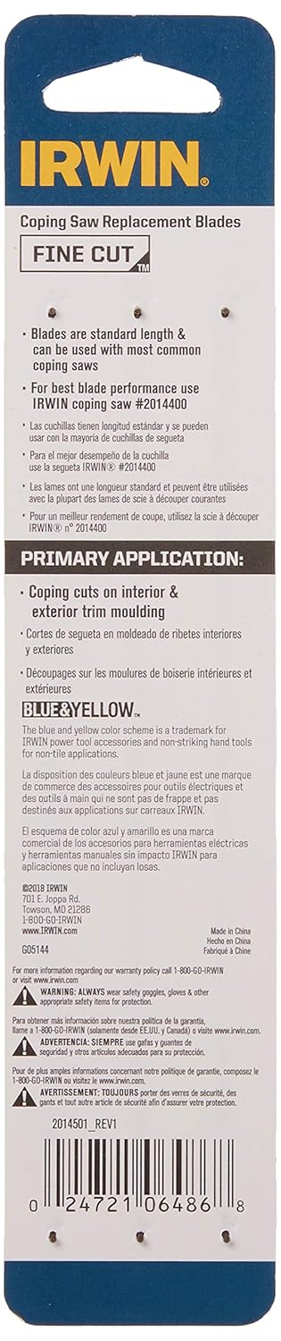 For fine woodwork, there's just no substitute for a coping saw. There are, however, substitutes for standard coping saw blades. IRWIN® coping saw blades are available in fine or coarse teeth and packs of three.