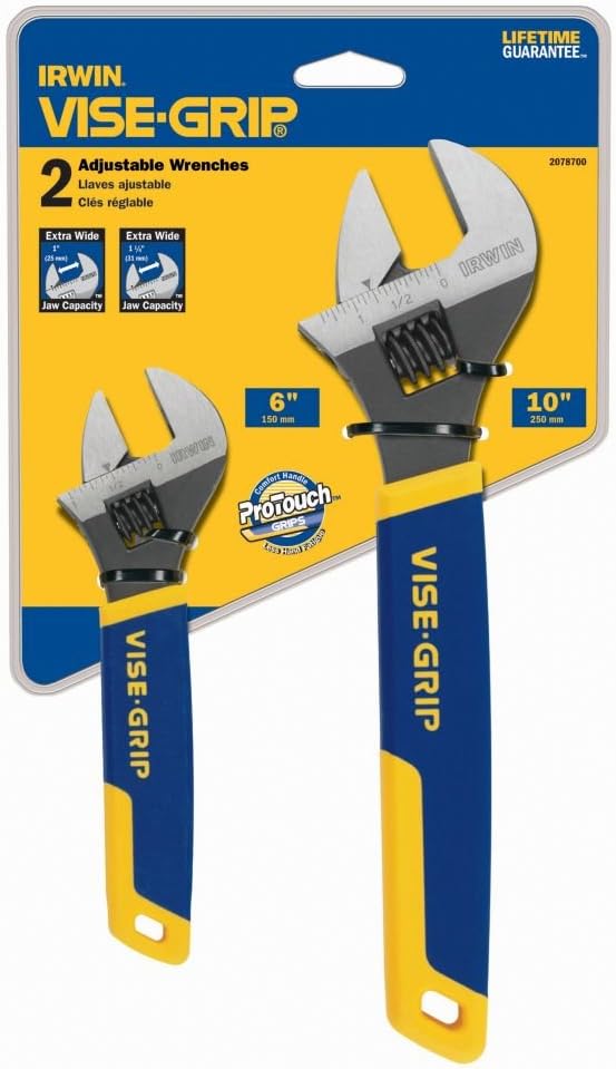 IRWIN 2078700, 2PC Adjustable Wrench Set "6" + 10"
