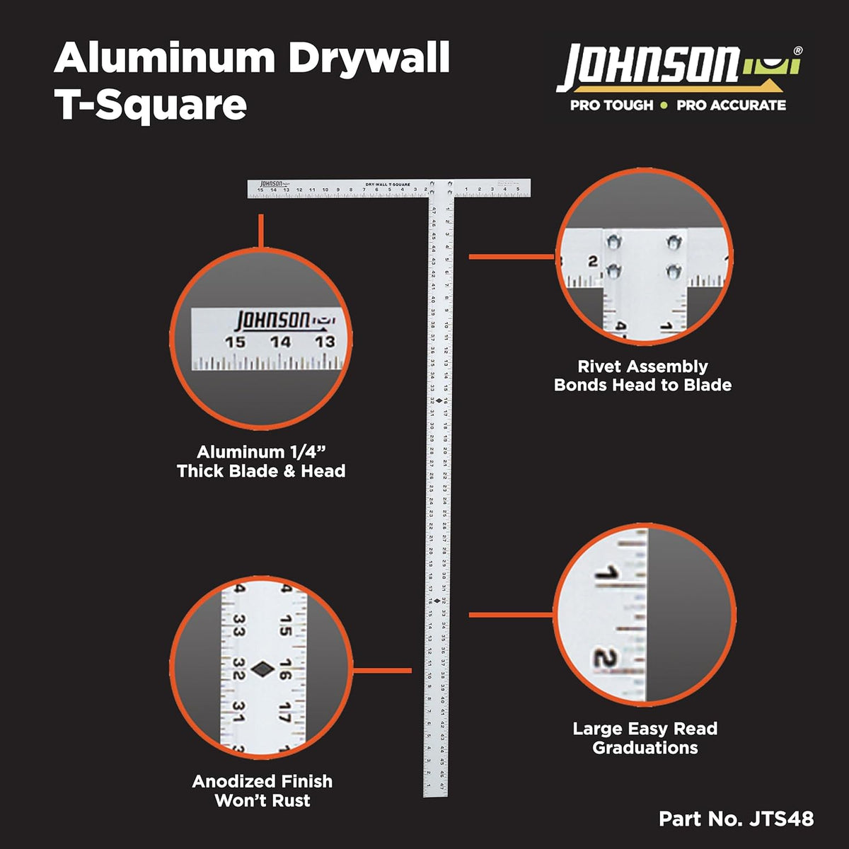 Johnson JTS48, 48" Professional Aluminum Drywall T-Square