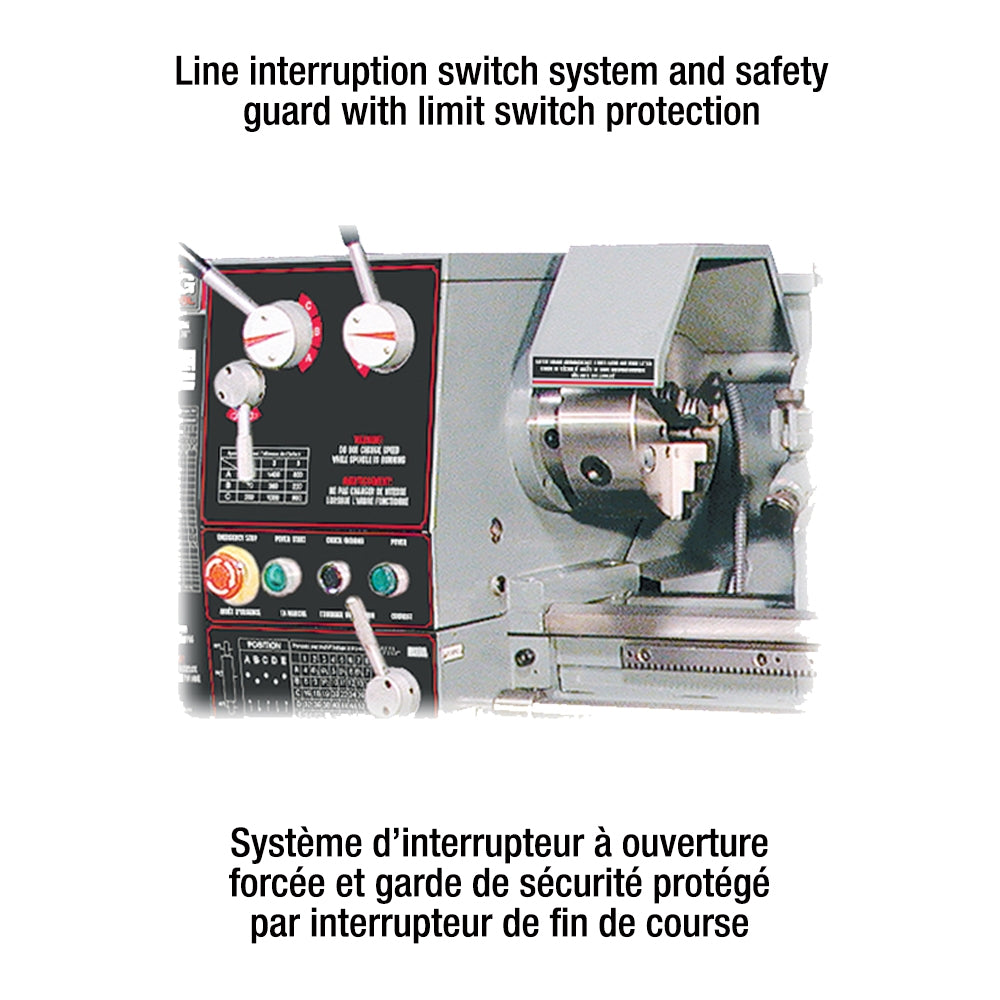 - Comes complete with 6"-3 jaw chuck, 8"-4 jaw chuck, imperial and metric gears, quick change tool post, steady rest, follow rest, 10" DI-4 camlock face plate, thread chasing dial indicator, MT#3 dead center, MT#3 arbor taper, 1/2" drill chuck, full length splash guard, tool box, chuck keys and hex. keys