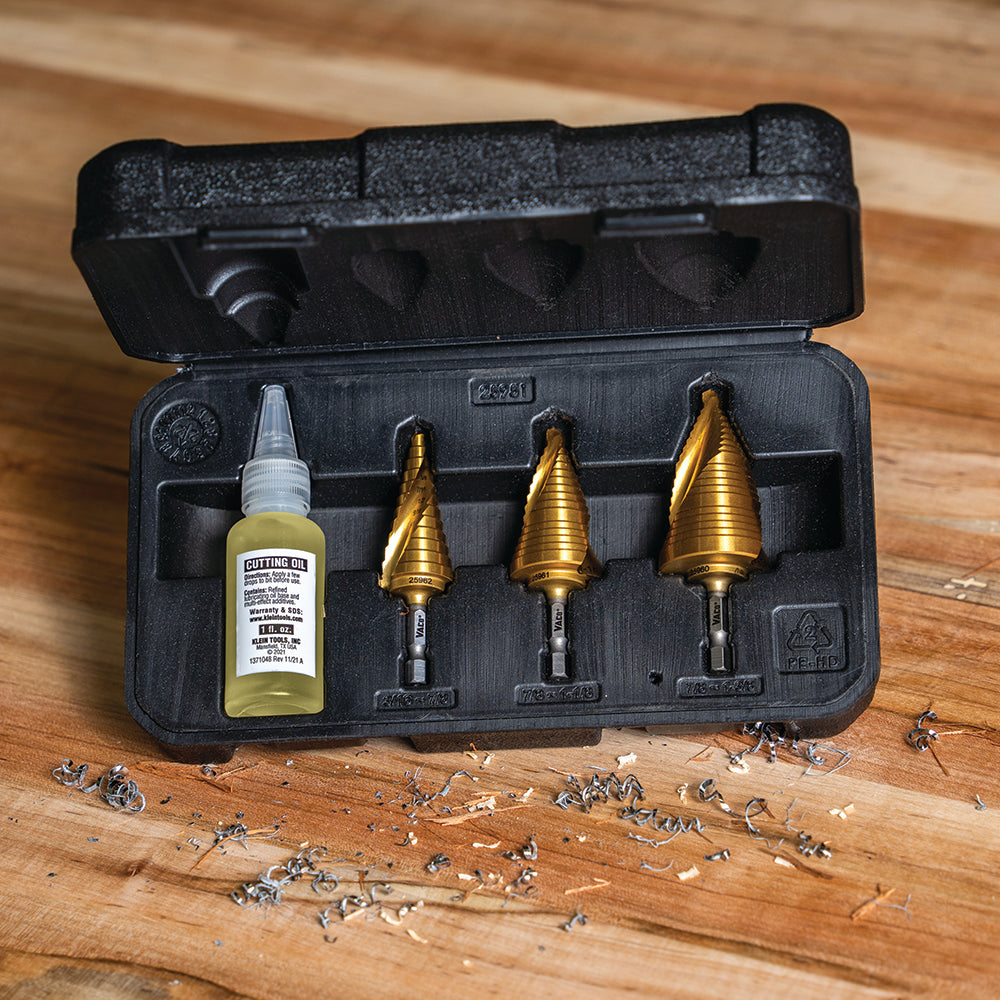 Klein Tools 25951, Step Bit Kit, Spiral Double-Fluted, VACO, 3-Piece