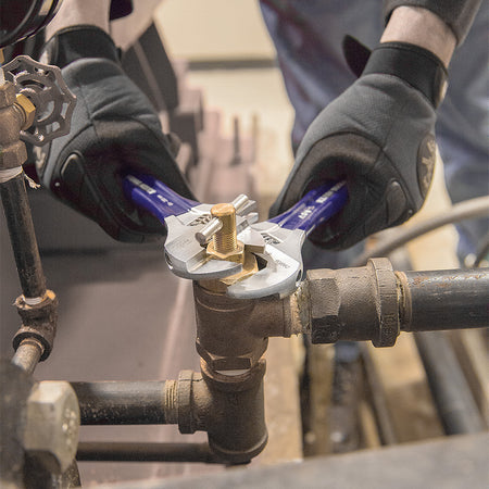 Manufactured for strength and durability, this 8-Inch wrench features 40-Percent slimmer jaws (than standard adjustable wrenches), an extra-wide 1-1/2-Inch jaw opening and meets ASME 107.100-2010 standards for adjustable wrenches. Excellent for working in tight spaces and wrench over wrench applications such as gas lines, pumps, extension valves and motors.