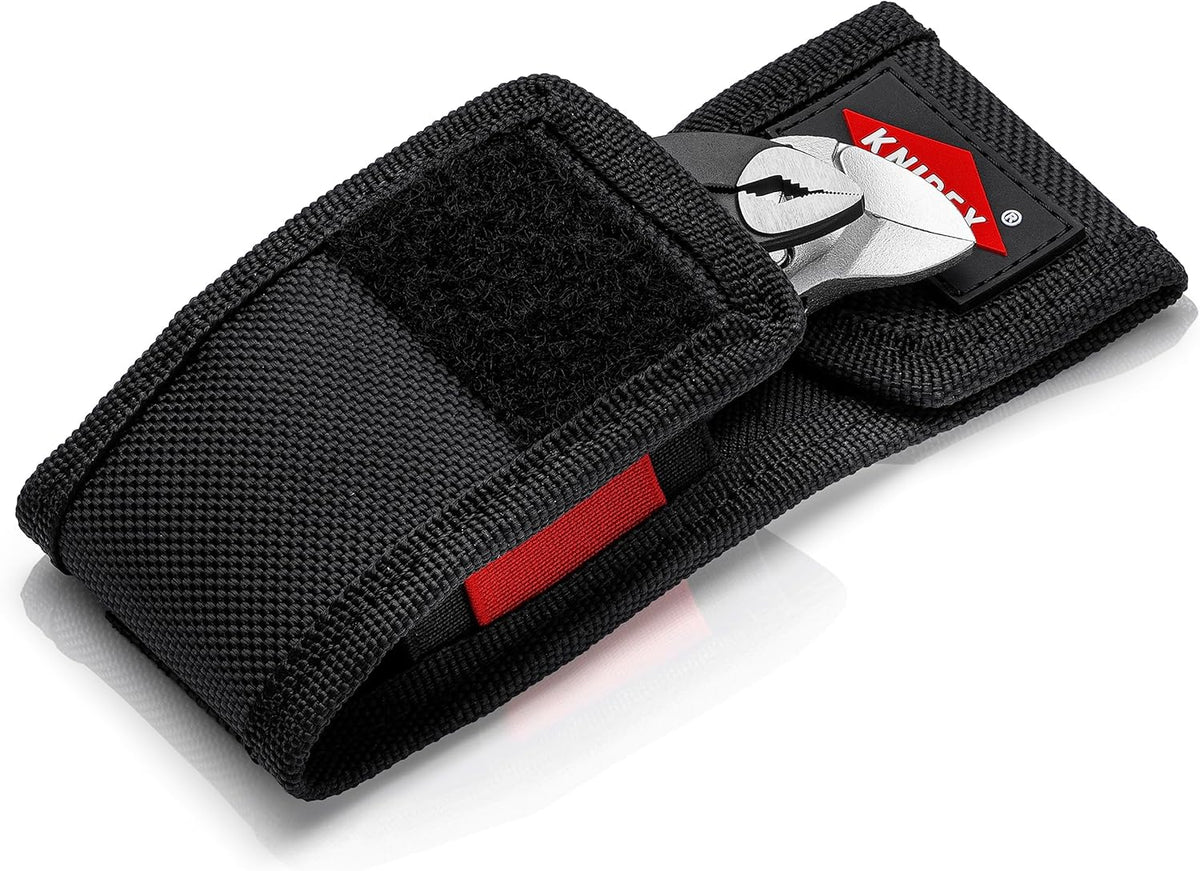 The KNIPEX Mini Pliers Set XS combines the gripping power of a Cobra® Pliers and precise functionality of a Pliers Wrench. The tools are recognized for their high-quality construction and durability. Ideal for every day carry, each set comes in a belt pouch and includes one (1) each: Cobra® XS Water Pump Pliers and Pliers Wrench XS. 87 00 100 - 4" Cobra® XS Water Pump Pliers. Grips like a big tool: The smallest water pump pliers in the world with full functional capability. One-handed quick adjustment up to 1" gripping capacity. The slim head provides a firm grip even in tight spaces. Self-locking on pipes and nuts: no slipping off the workpiece and low hand force required. 86 04 100 - 4" Pliers Wrench XS. At only 4" this is the smallest fully functioning pliers wrench in the world. One-handed quick adjustment up to 3/4" gripping capacity. Excellent for gripping, holding, pressing and bending applications. Parallel jaws evenly distribute force for a secure grip. Both tools have a pinch guard preventing fingers being pinched. Texturized handles on both tools for a secure grip. Belt pouch made of durable polyester fabric with sewn-in belt loop to easily slip on belt. Pouch holds both tools and includes fabric cover with hook and loop fastener to keep tools secure inside.