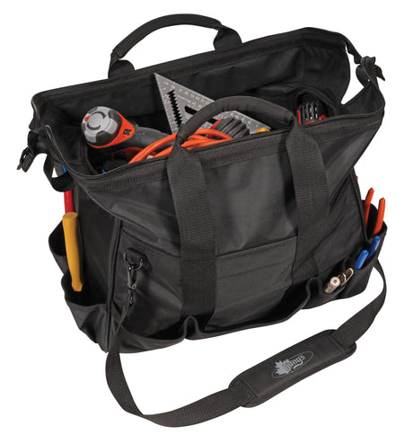 - Featuring 13 multi-use interior pockets and 12 exterior pockets, this bag keeps tools organized and easy to find.