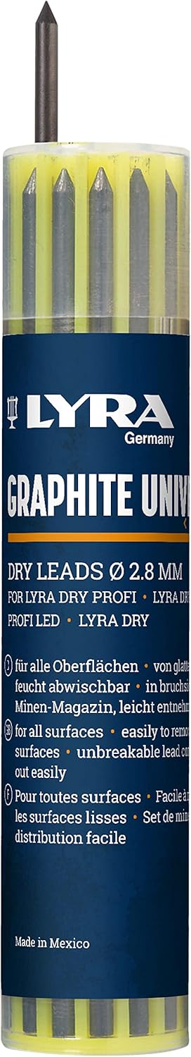 LYRA L4499102, LYRA Dry Refill Set Filled with 12 Universal Graphite Lead in 2B, 2.8 mm, for All Surfaces, Wipe-Clean