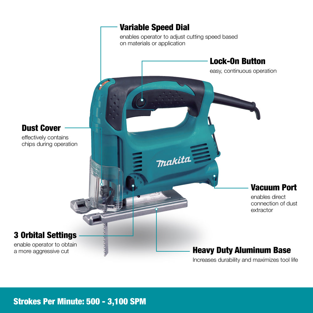 Makita 4329K, Jig Saw - VS Orbital w/ Carrying Case