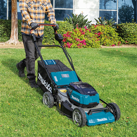 - 18Vx2 innovation accepts second set of 18V batteries with manual switch to provide twice the mowing capacity