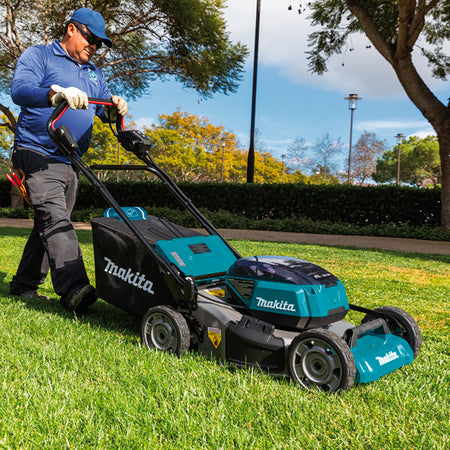 - 18Vx2 innovation accepts second set of 18V batteries with manual switch to provide twice the mowing capacity