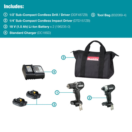 Makita DLX2423BX3, 18V LXT BL Sub-Compact Brushless 2 Tool Combo Kit