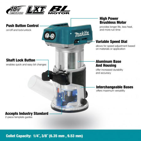 Makita DRT50ZX4, 18V LXT Brushless Router (Tool Only)