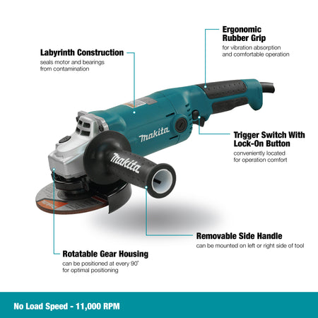 Makita GA5010, 5" Angle Grinder, with Lock-On Switch