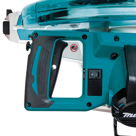 - Rail forward design enables saw to be placed against wall to maximize effective workspace