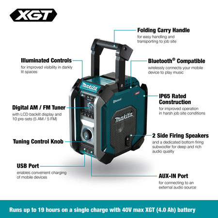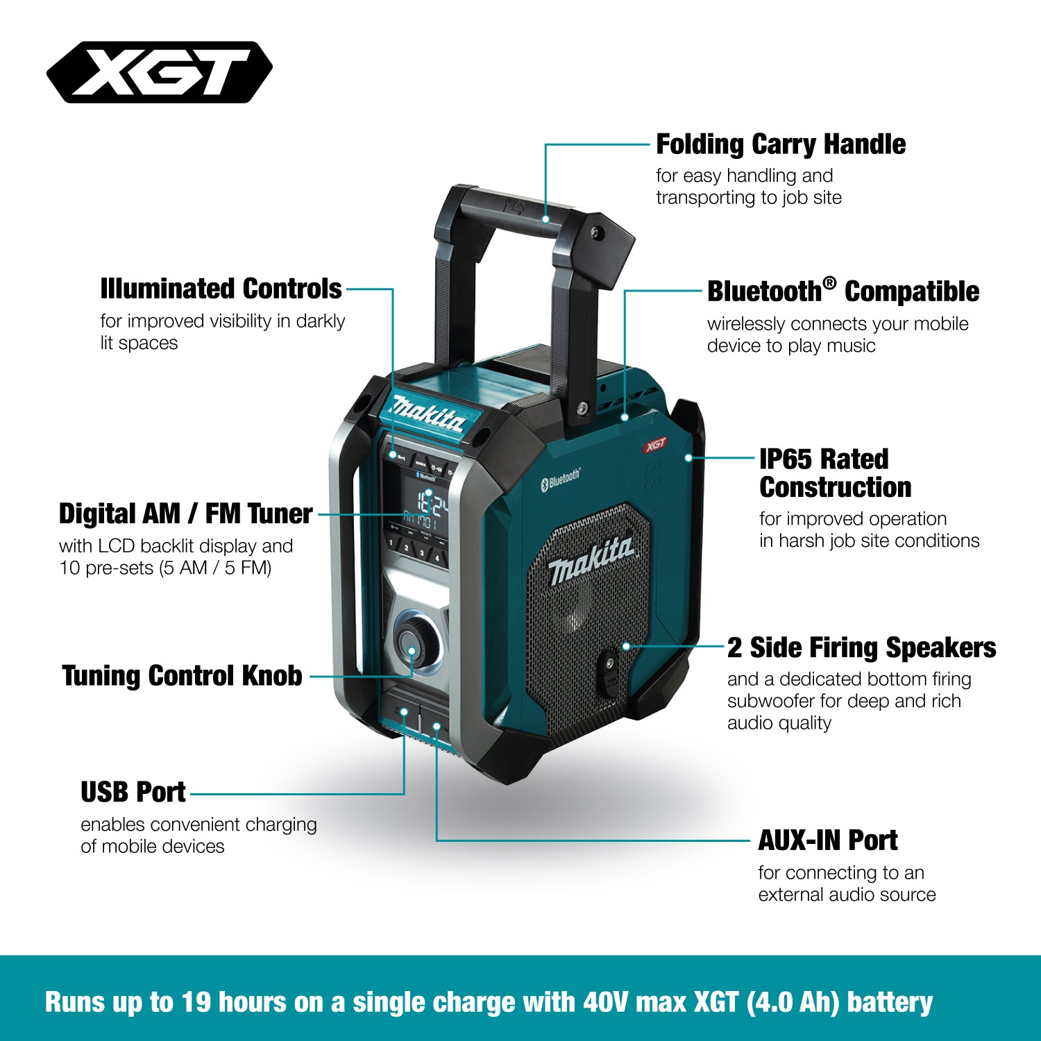 Makita MR006G, 40V MAX XGT Cordless or Electric Jobsite Radio with Bluetooth