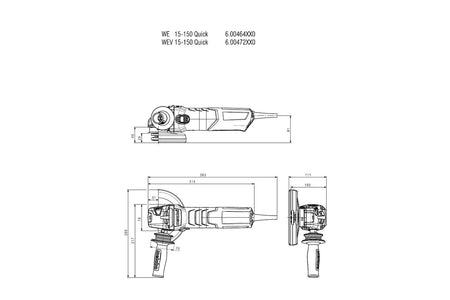 Metabo 600464420, WE 15-150 Quick Angle Grinder (5”, 9,600rpm , Tacho-Constamatic)