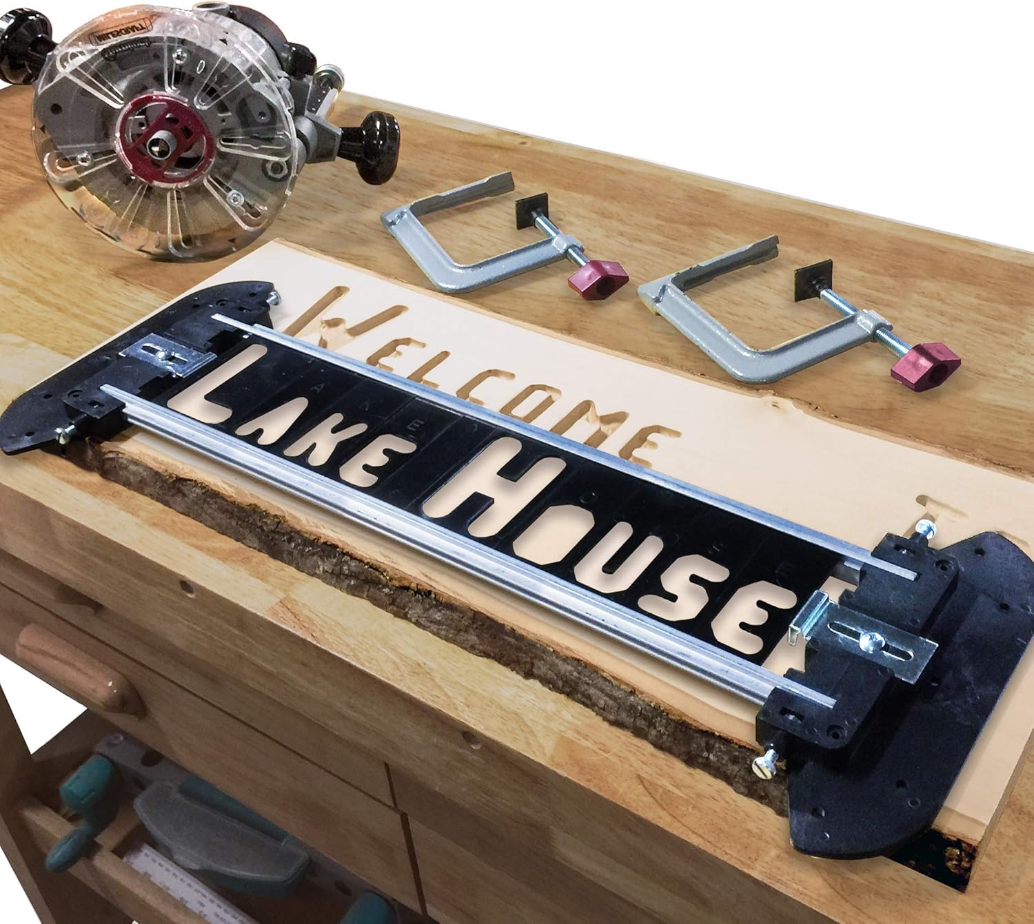 Rout professional-quality wooden signs with the Milescraft® SignPRO™. This jig uses both 1-1/2” and 2-1/2” characters without having to make any measurements. Simply arrange your sign by sliding the letters and numbers between the two rails and you are all set. The versatile design of the entire kit works with your existing router. Whether creating signs for the cabin, marking hiking trails, or numbering mail box posts, this jig makes it easy to create custom signs.