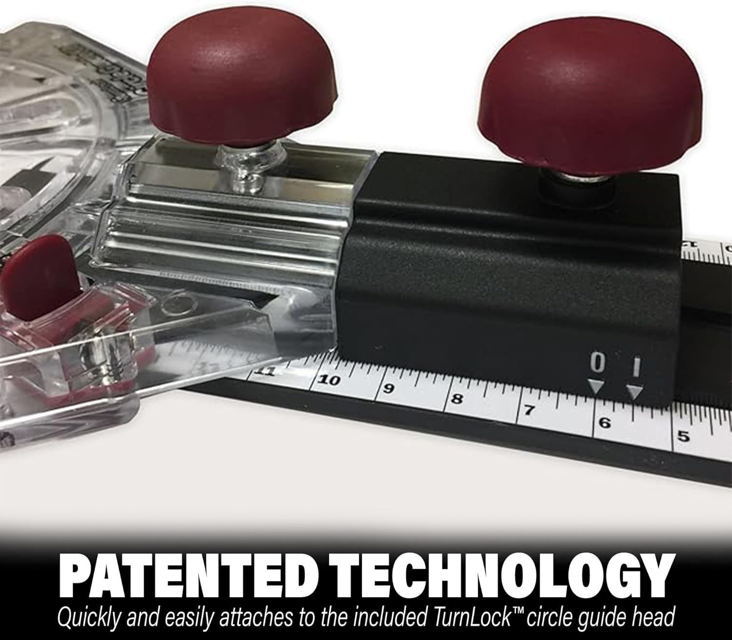 Cut small and large circles from 1.5” in diameter to 52” in diameter with the CircleGuideKit™. With the included TurnLock™ base plate, this product is compatible with most routers. There is no longer a need for that homemade router circle jig, the CircleGuideKit™ does it all for you and includes everything you need to cut your desired circle. This router guide also includes a BONUS Offset Base for finishing edges on your workpiece. Best used with a plunge router.
