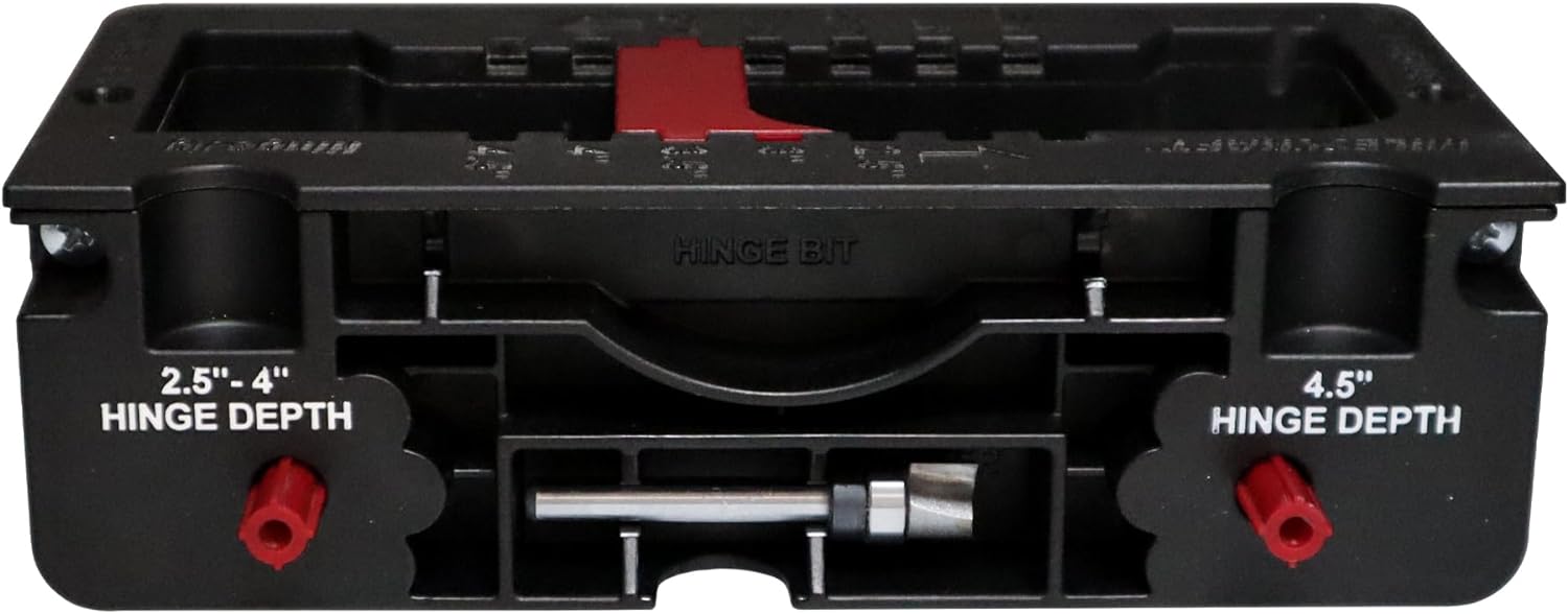 - Contains built in storage compartments for router bit and available self-centering hinge bit (not included) for convenient retrieval