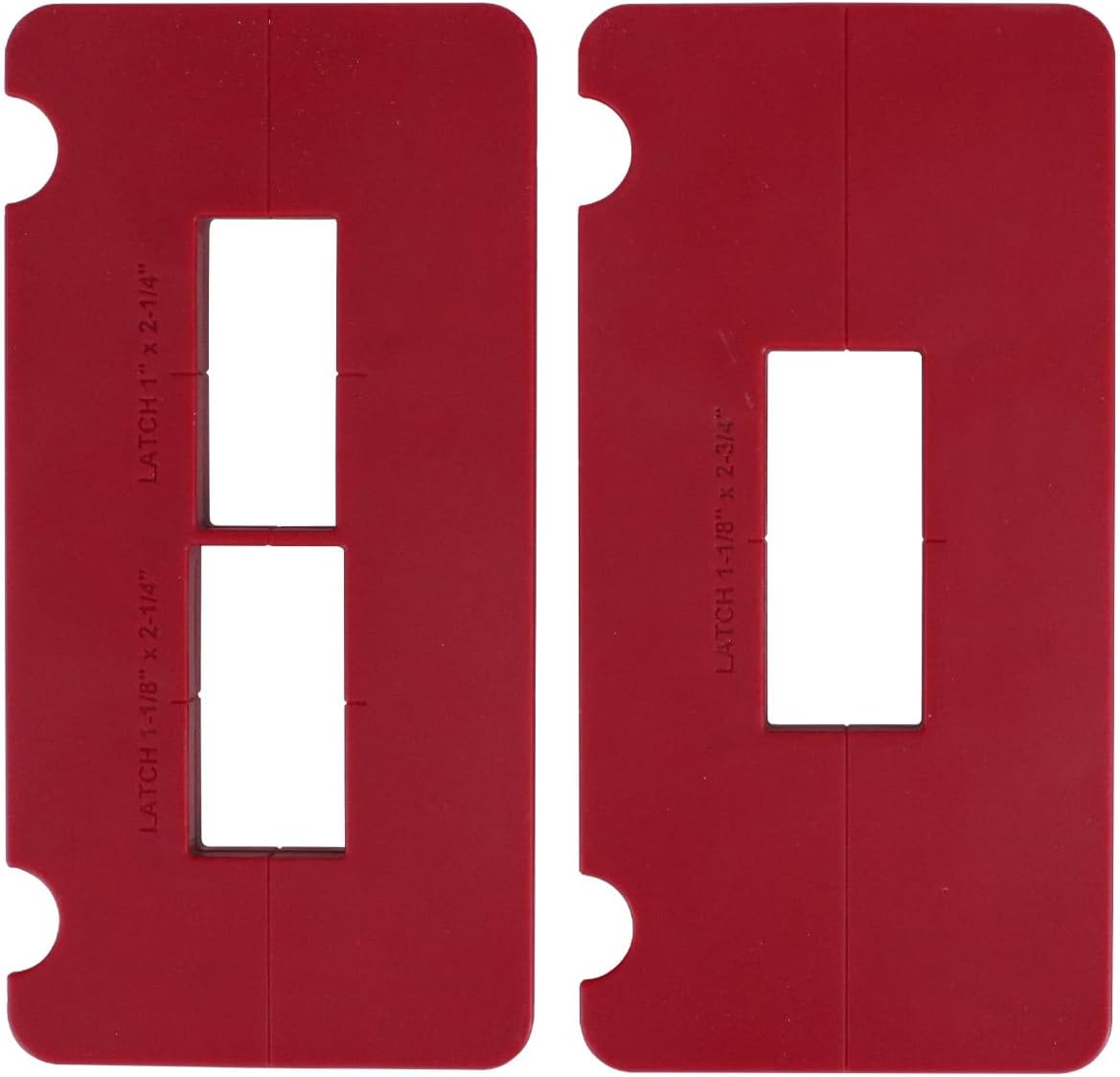 - Kit includes templates to rout common door latch mortises sized 1” x 2-1/4” , 1-1/8” x 2-1/4” , and 1-1/8” x 2-3/4”
