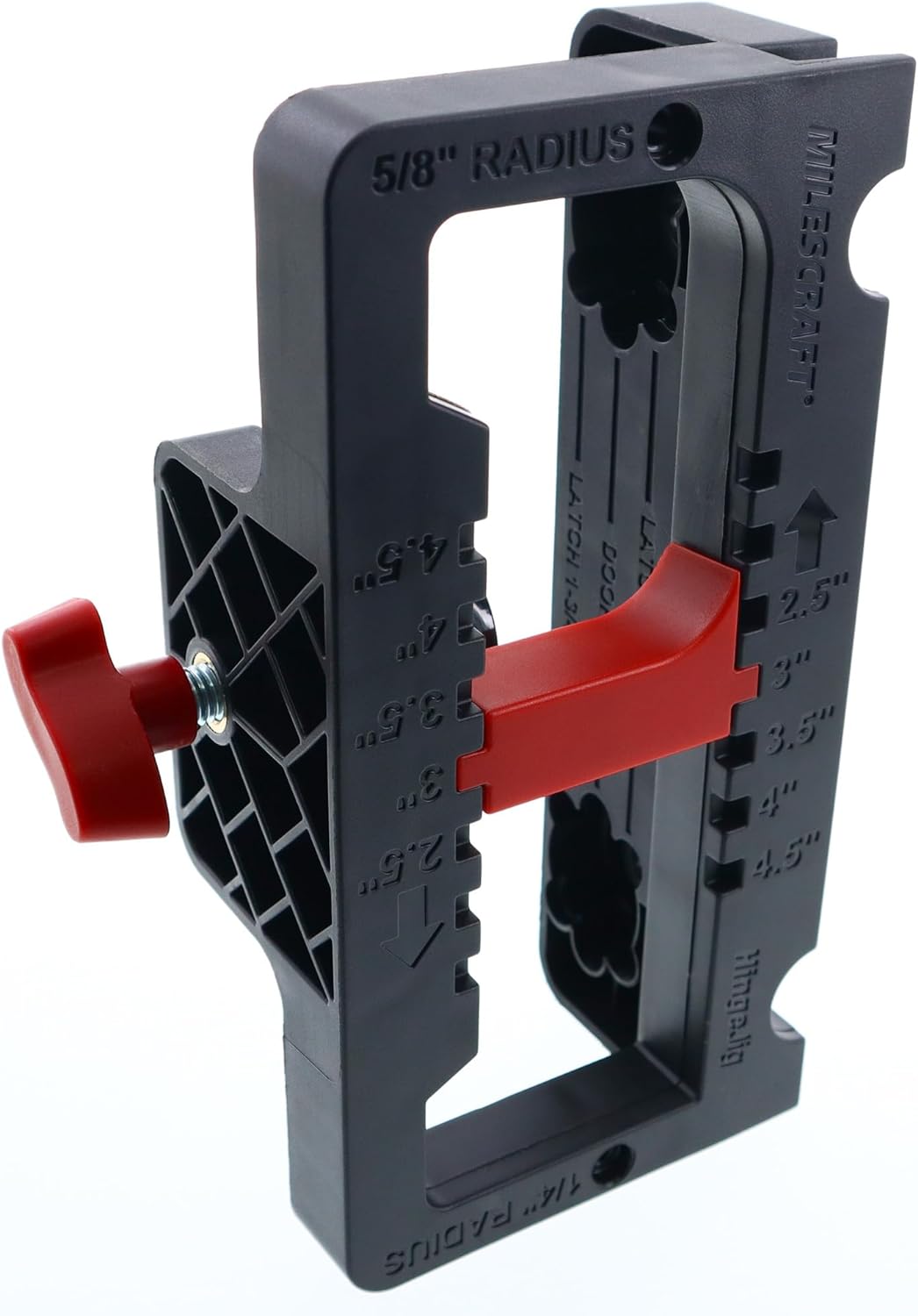 - Adjustable settings allow door hinge jig to be used on all standard size 1-3/8” and 1-3/4” thick doors