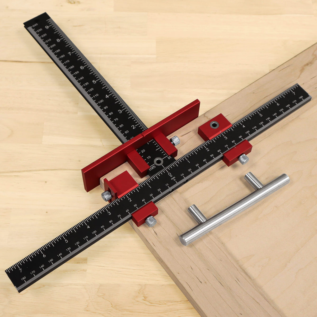 The 100% Metal Construction eliminates flexing, while precision etched high visibility scales, in both inches and metric, make sure the setting is correct every time. Quick set hardened steel drill guides adjust to the required spacing, while dual edge stops perfectly position the jig for knob, pull, and handle installation. Door after door, and drawer after drawer.