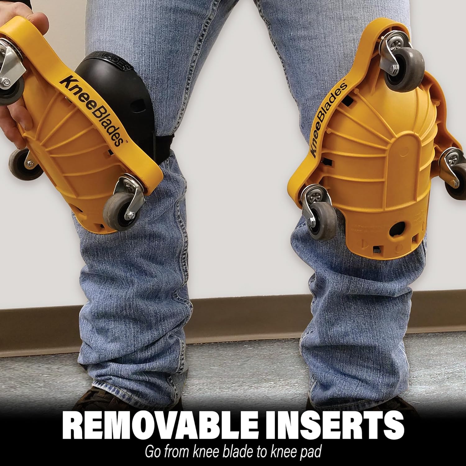 High-quality KneeBlades® allow for more balance, flexibility, and mobility. The three-wheeled mobile base allows for full 360-degree turning capability, without lifting from the floor. Close to the ground knee roller design minimizes back stress. With the push of a button, you can go from knee blade to knee pad.