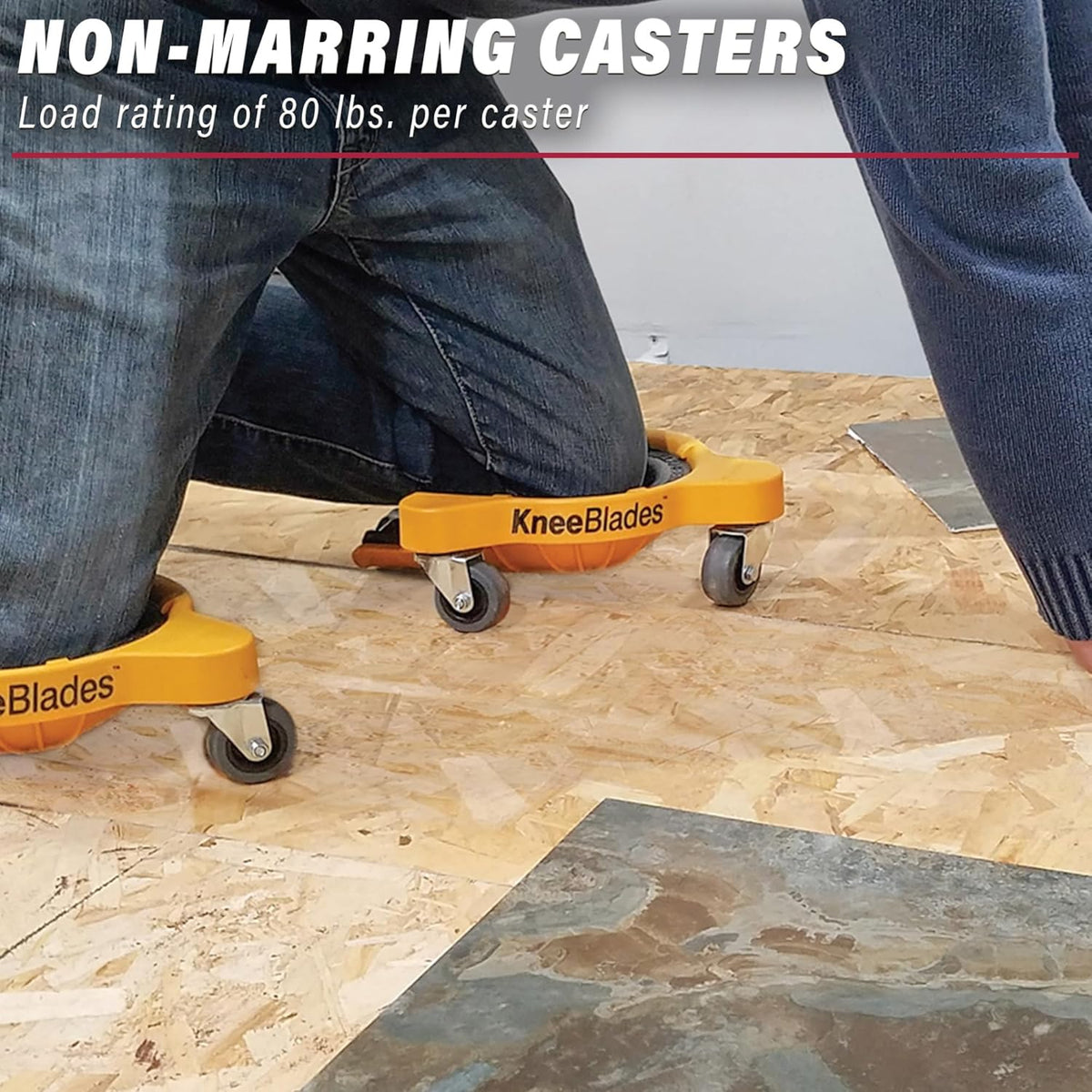 - 3 durable non-marring casters on each knee blade