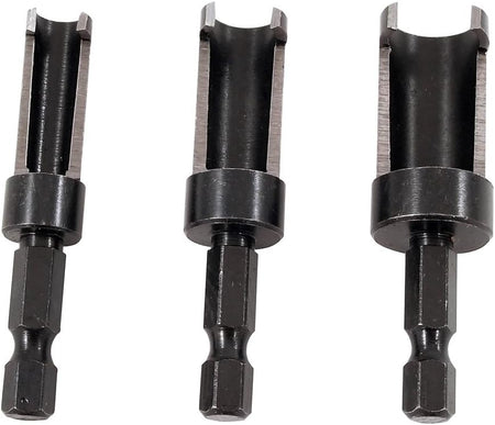 - Three piece set includes steel plug cutters to produce 1/4″, 3/8″, and 1/2″ tapered plugs for improved fit