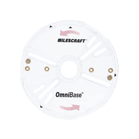 The OmniBase™, by Milescraft, is the next generation in universal router bases. The 7” router base is compatible with nearly ever router, from small trim routers to full-size. This is possible due to its patented adjustable swivel mounting wings. Secure one or both fixed mounting locations to your router, then swivel the others to align. The OmniBase™ also is compatible with all of the other TurnLock™ jigs from Milescraft, making it a must have accessory to connect your existing router to all of the other jigs from Milescraft.