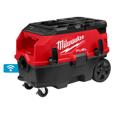 Milwaukee's M18 FUEL PACKOUT 9 Gallon Dual-Battery Dust Extractor w/ VACLINK sets the standard for cordless dust extractors with strong performance and unmatched versatility. The Automatic Filter Cleaning mechanism provides the HIGHEST SUSTAINED AIR FLOW to maintain productivity during dust extraction applications. This mechanism paired with (2) HEPA Filters, delivers OSHA Table 1 Compliance. This dust extractor has VERSATILE POWER with corded and cordless capabilities for all-day productivity. With VACLINK, an integrated wireless dust control technology, compatible tools, and remotes connect to the dust extractor, allowing for activation from the dust-producing application for increased efficiency. The POWERSTATE Brushless Motor delivers 125 CFM on (2) M18 Batteries and 175 CFM when plugged in. On (2) M18 REDLITHIUM FORGE HD12.0 Batteries, MAX POWER MODE delivers up to 41 minutes of continuous cleaning and 78 minutes on MAX RUN-TIME MODE. Optimized for concrete dust, drywall dust, and sawdust, the low flow indicator communicates if flow drops below optimal performance. Also capable of wet clean-up, water sensors indicate if the tank is full. The included 36mm x 10’ anti-static hose and attached hose clip connect to included power tool and table saw adapters that allow for efficient dust collection when paired with other tools. This extractor is PACKOUT compatible for convenient transportation and storage and offers ONE-KEY track and manage compatibility.