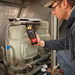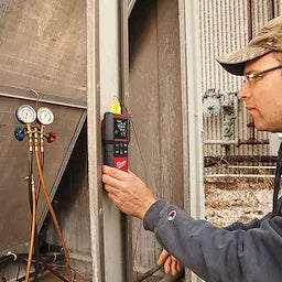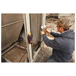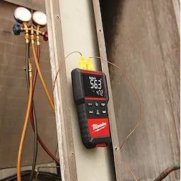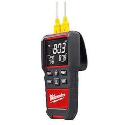 Heavy duty contact temperature meter for professional industrial, commercial and residential applications. The perfect tool for the professional, commercial or industrial HVAC and Service technicians; includes the features that are needed to get the job done in the field, on-site or in the plant. Milwaukee 2270-20 Contact Temp Meter measures temperatures from 2500 to -328°F (1372 to -200°C) to cover a wide range of applications; dual temperature measurement for faster measurement of heating and cooling systems; timer function for easy tracking of minimum, maximum and average temperatures over time; accurate to 0.1% of reading ±0.7°C for correct measurements every time; high contrast white on black display for easy reading in all conditions; magnet strap for hanging meter in all applications. Includes two (2) K-type thermocouples, three (3) AA batteries, and manual; covered by 5 year warranty.