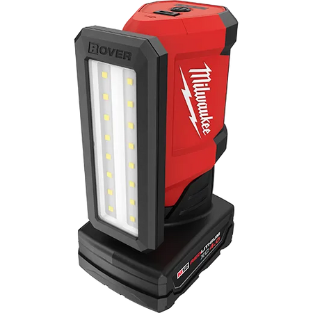 Our M12™ ROVER™ Service & Repair Flood Light w/ USB Charging gives you a flexible light source made for any environment, in any orientation. The light provides 700 lumens of TRUEVIEW™ High Definition Output, is capable of lighting up a workspace for up to 24 hours at a time with an M12™ XC4.0Ah Battery Pack, and features a light head that pivots 110° for you to orient the light in multiple directions. The light comes equipped with a strong rear-facing magnet made for jobsite surfaces like steel studs, I-Beams, and job boxes. The light’s streamlined base gives you a handheld option for inspection lighting. A 2.1Amp USB port is included with the cordless rechargeable LED floodlight for charging a phone or external device. The ROVER™ Flood Light features an integrated keyhole for hanging capability on non-metallic surfaces. This compact pivoting floodlight has an IP54 rating for dust and water resistance, has an impact-resistant lens protecting the LEDs, and can survive up to 9ft drops. MILWAUKEE® ROVER™ floodlights are built to go anywhere and withstand anything.