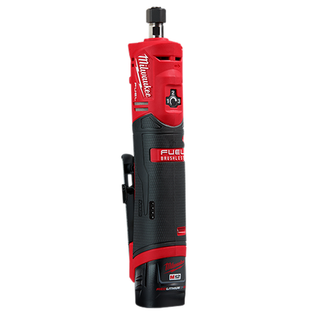Our M12 FUEL™ 1/4" Straight Die Grinder Kit is designed to replace pneumatic die grinders. The die grinder provides you with up to .3 HP performance to outperform pneumatic die grinders by 20%. The M12™ inline die grinder features 3-Mode speed control and a responsive variable-speed trigger giving you unmatched control with your most common accessories. The cordless die grinder provides you with greater access and mobility, eliminating the frustrations of hoses and compressors. In addition to the tool, this kit includes two M12™ REDLITHIUM™ 2.0 batteries.