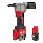 The M12 Rivet Tool is the first cordless solution that delivers fast, easy riveting while maintaining performance, durability, and size. The 2550-20 can pull up to 3/16" stainless steel rivets, 450 1/8” steel rivets on one 1.5 a/hr. charge, and reduces muscle effort from a hand tool by over 60%. No compressors or hoses during set up and operation makes this tool a great replacement to pneumatic products. 2X longer life over current cordless solutions delivers greater durability from common jobsite conditions and use. This is the most compact cordless rivet tool on the market, measuring only 6.5” in length allowing users more access in tight spaces. The M12 Rivet Tool is part of the M12 battery platform, offering 90+ solutions on one battery system.